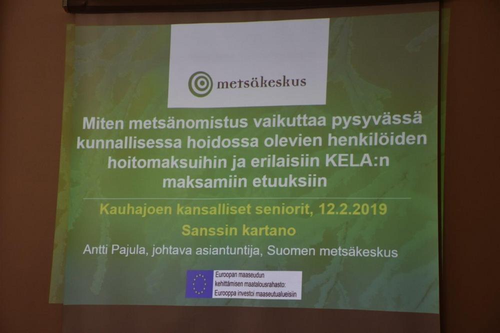 12.2.2019 Metsäkeskuksen Antti Pajula esitelmöimässä