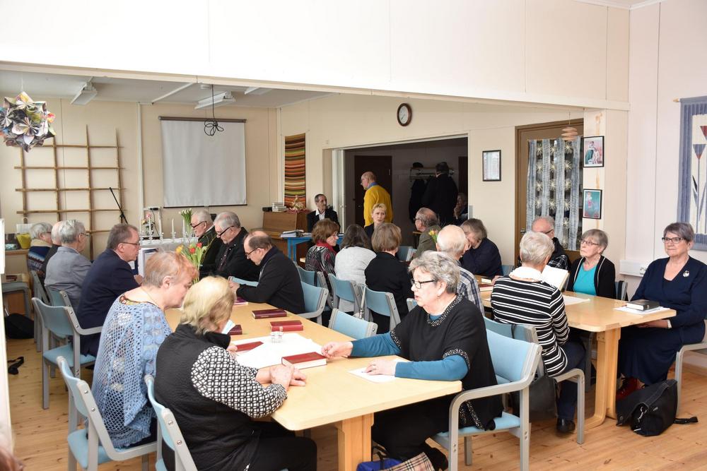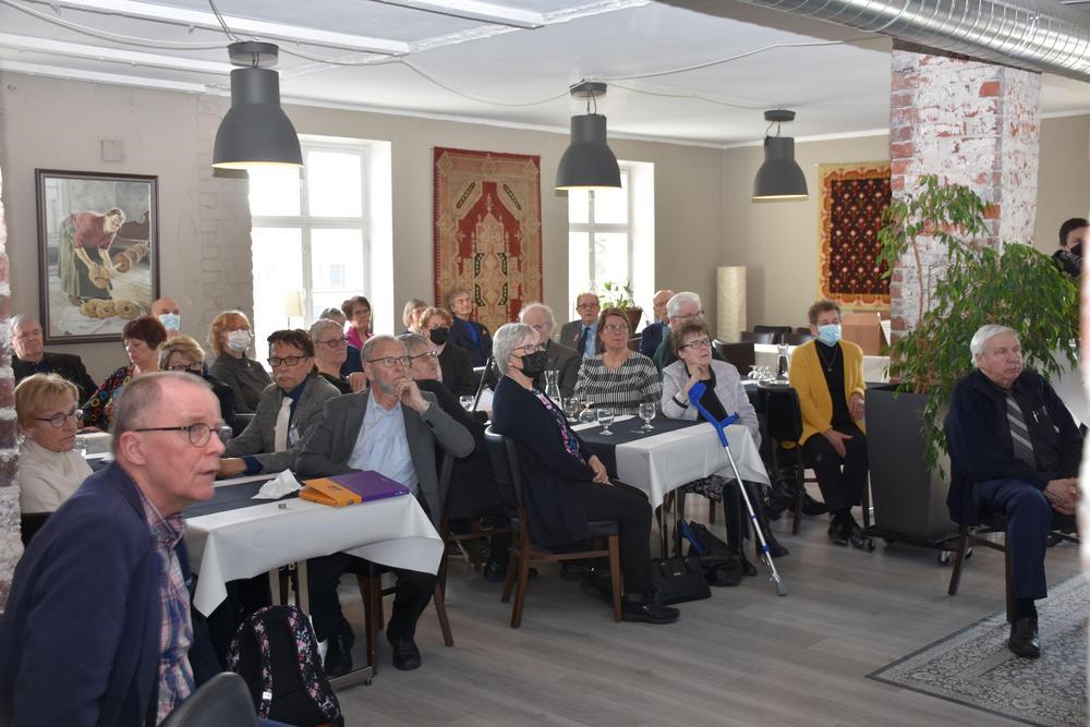 Kuukausi- ja kevätkokous 8.3.2022. Kahden edellisen vuoden aikana poisnukkuneita muistettiin perinteen mukaan kynttilät sytyttämällä.